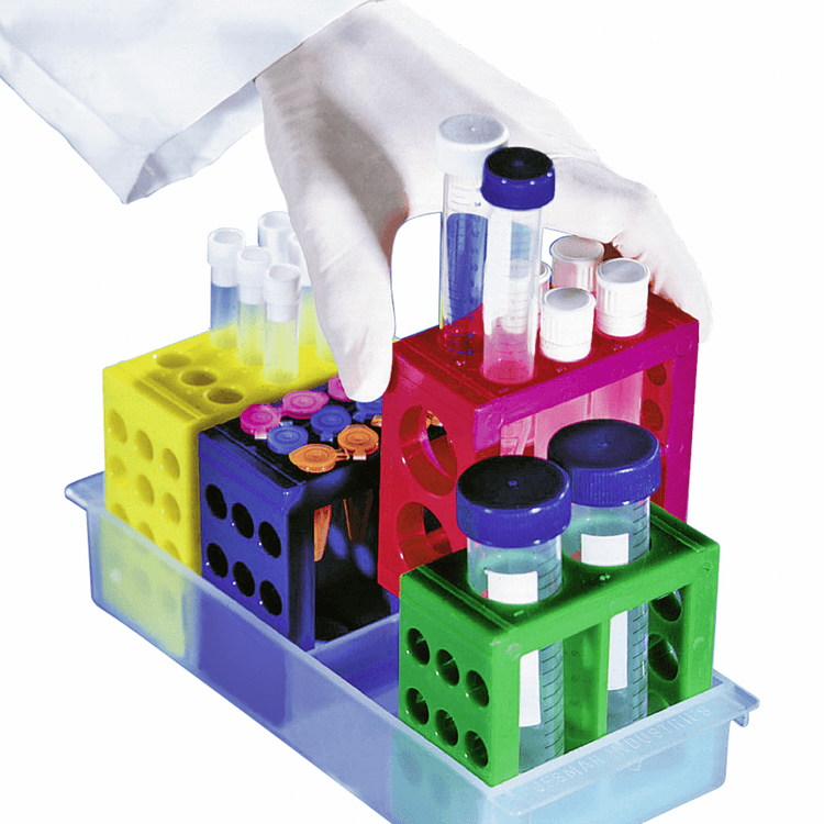 Tube racks are available in different sizes and configurations to accommodate a wide range of tube volumes, from microcentrifuge tubes to other larger culture vessels. They are designed to keep tubes organized, prevent contamination, and ensure easy access during procedures. Some tube racks are stackable for space efficiency, while others feature angled or adjustable slots for optimal tube positioning. Whether for routine laboratory tasks or specialized experiments, tube racks are an indispensable item for maintaining organization and safety in the lab.