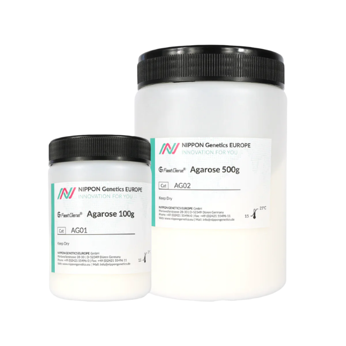 The FastGene® Agarose is suited for a rapid separation of DNA and RNA fragments as well as PCR products and plasmid DNA. This molecular biology grade agarose is easy to dissolve and enables a rapid gelling. The purity of the agarose leads to an excellent transparency and a low background.