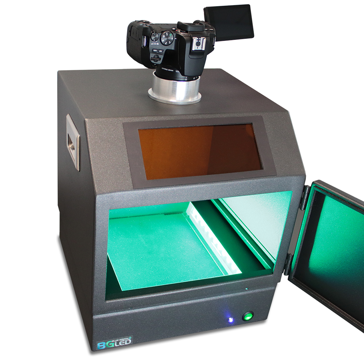 The FAS-DIGI Compact comes with a huge Blue/Green LED transilluminator (21 cm x 26 cm) giving a large illuminiation area for various gel sizes.